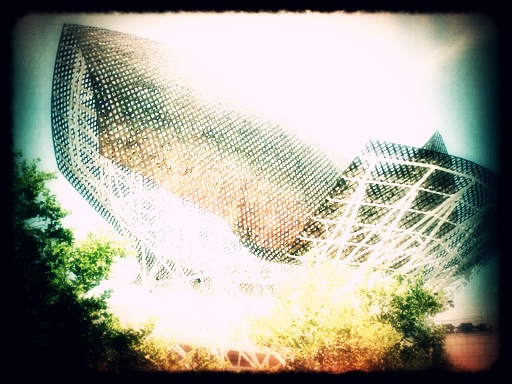 I’ve been experimenting a lot with iPhone filters lately, particularly the ones that produce random results. I’m often delighted with the aftermath, as they produce images I never would have dreamed up myself. Take the pic above, for instance. It’s Frank Gehry’s Peix, run through the Tiltshift and Plastic Bullet apps. The Apocalypse Filter, if you will.