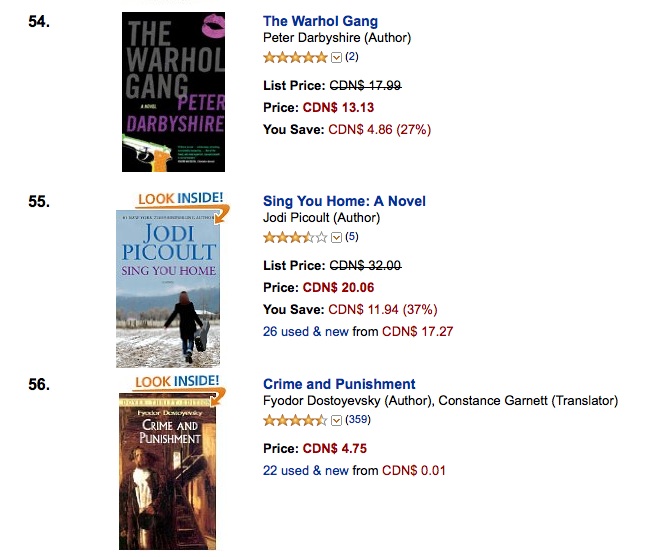 The Warhol Gang has had a nice surge in sales since the recent release of the paperback version, and it cracked Amazon’s top 100 list for literary fiction. It was at #54 last I looked — narrowly slipping past Crime and Punishment! If it cracks the top 50, I’m going to something crazy to celebrate. Like maybe go outside.