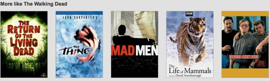 A screenshot from my Netflix recommendations. If you like The Walking Dead, you may also like: