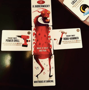 I could tell you that it’s a quick but ever-changing game, bound to appeal to people who like Munchkins and Cards Against Humanity.
